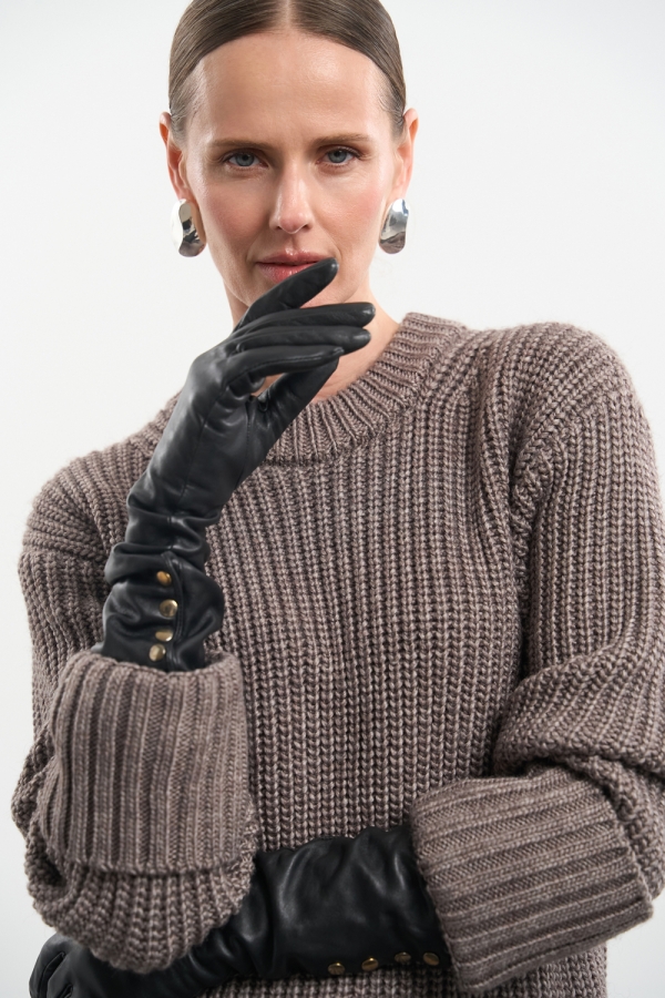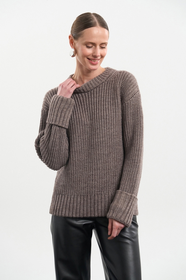 Теплий та зручний светр об'ємної в'язки. Виготовлений з преміальної пряжі, що містить вовну мериноса та альпаки.