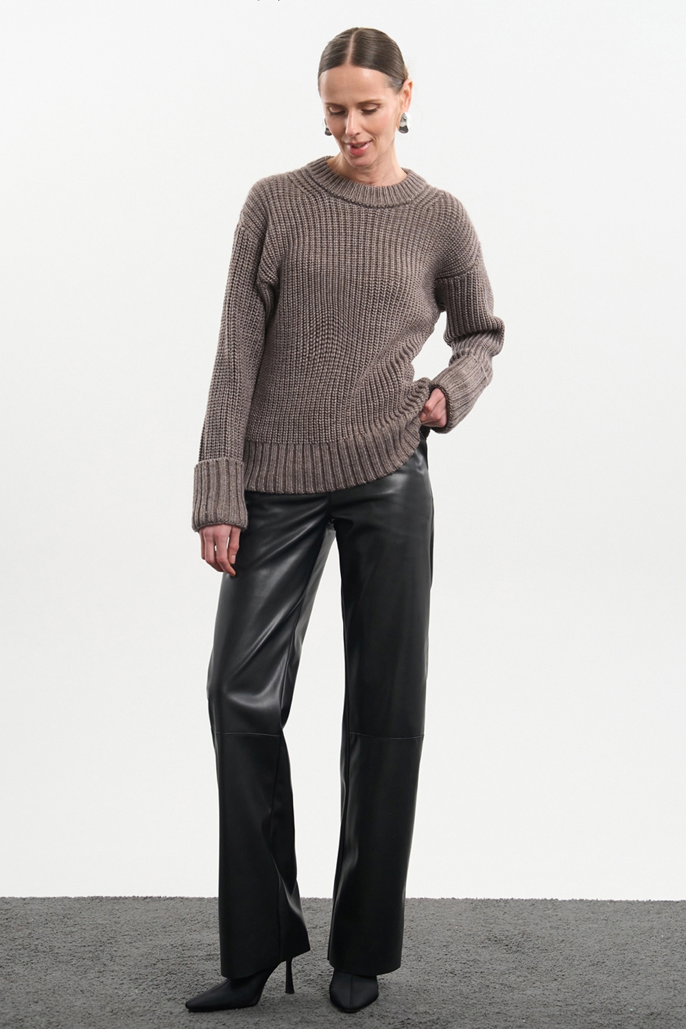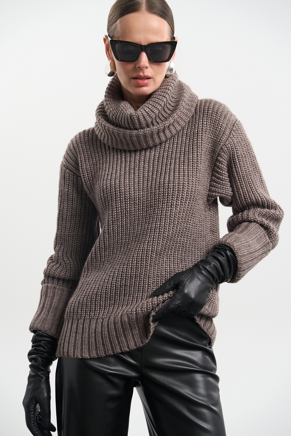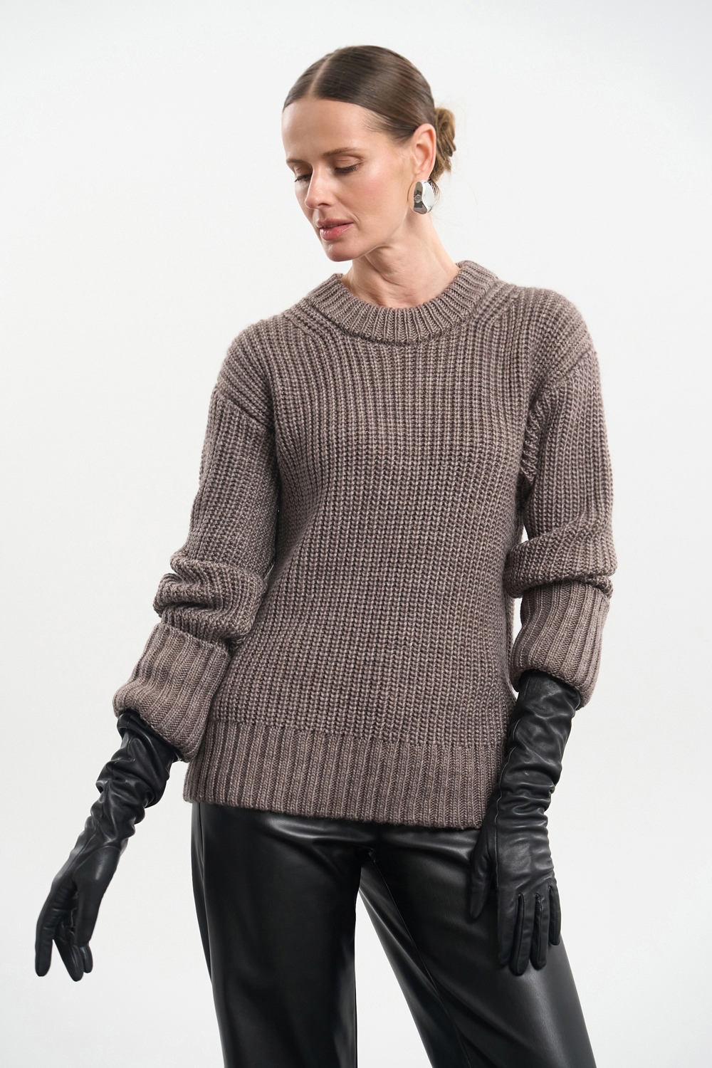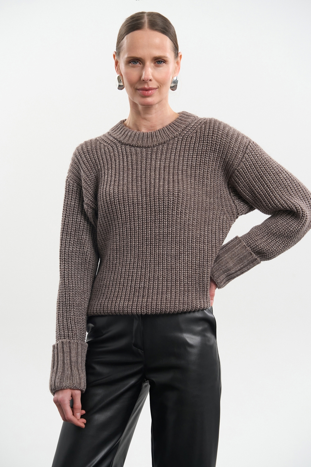 Теплий та зручний светр об'ємної в'язки. Виготовлений з преміальної пряжі, що містить вовну мериноса та альпаки.