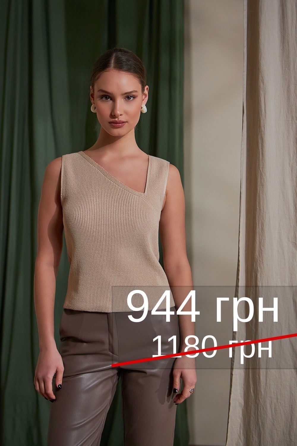 Базовий топ у рубчик з асиметричним вирізом, виконаний з натуральної пряжі з включенням бавовни та віскози, дуже приємний до тіла. Ідеальна капсульна річ для гардеробу.