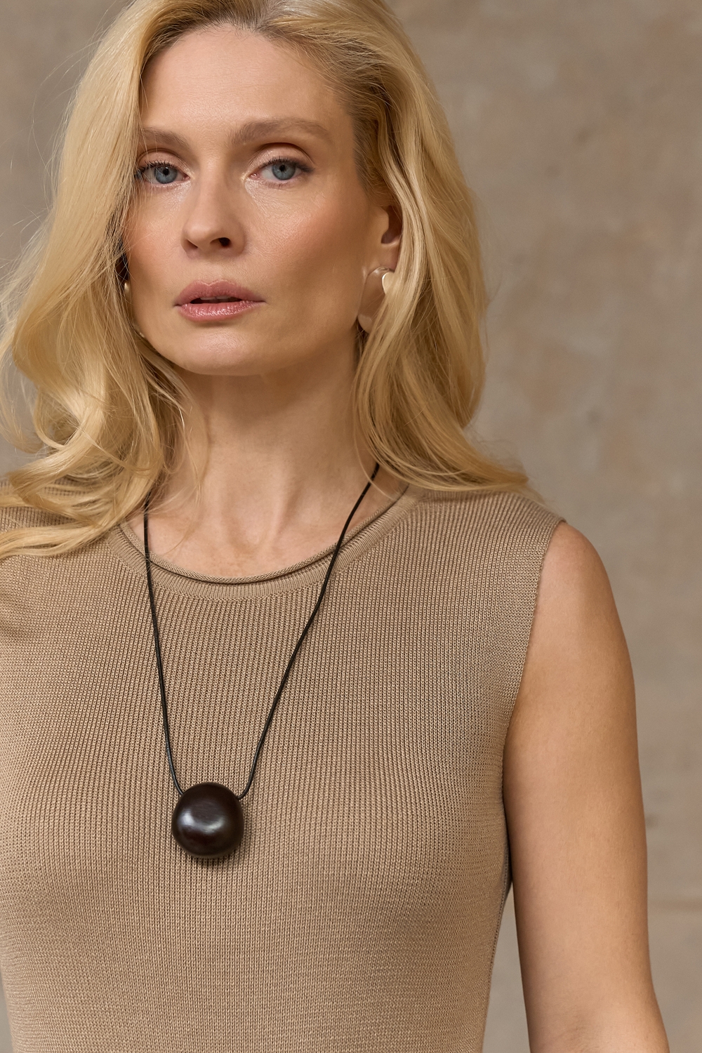 Базовий трикотажний топ без рукавів із шовковистої віскозної пряжі. Лаконічний дизайн з тонко окантованими проймами і горловиною.