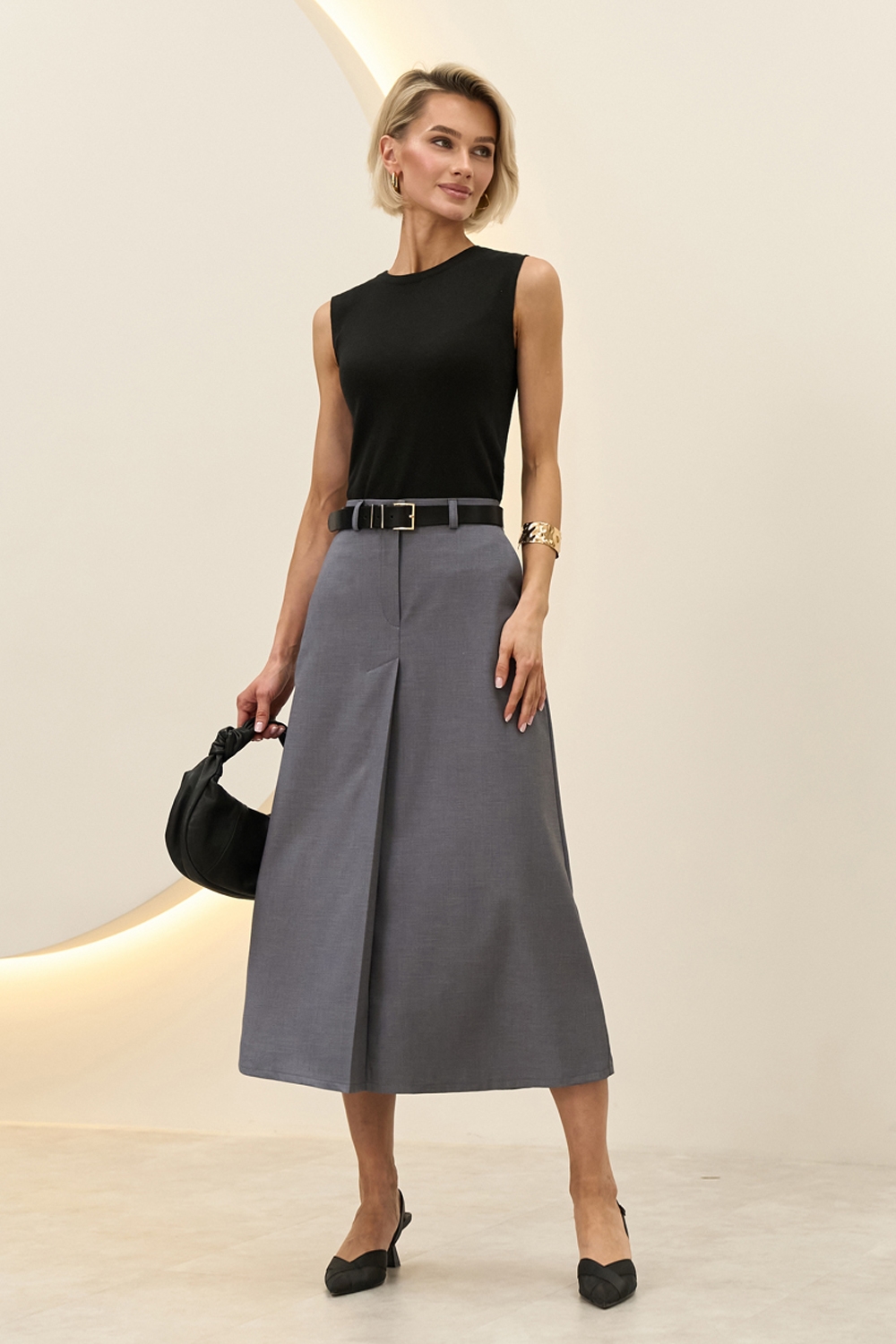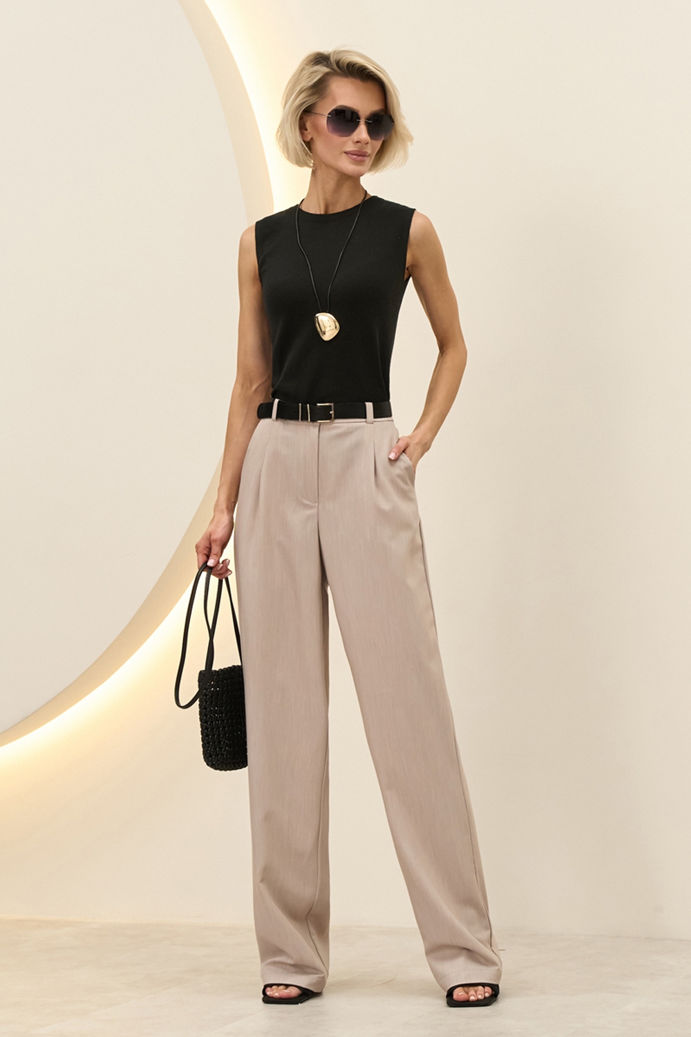 Базовий топ з супертонкої бавовняної пряжі люксової якості. Напівпрозорий, прямого силуету в гладкому переплетенні. Елегантна модель для створення жіночних та класичних образів.
