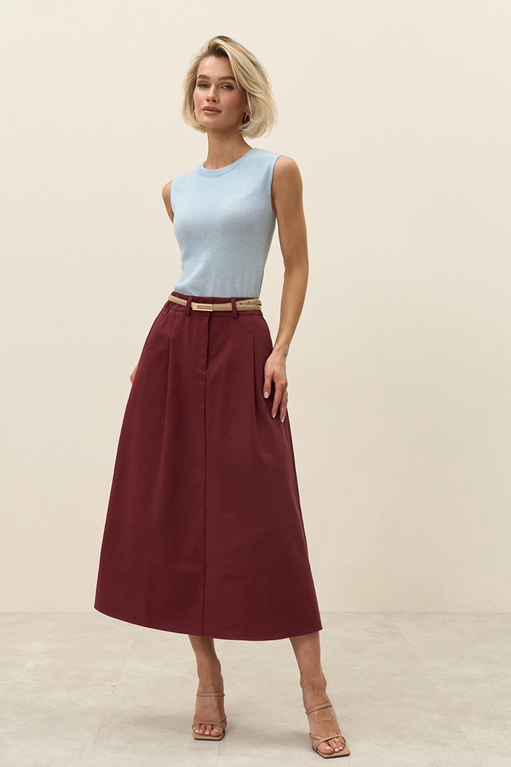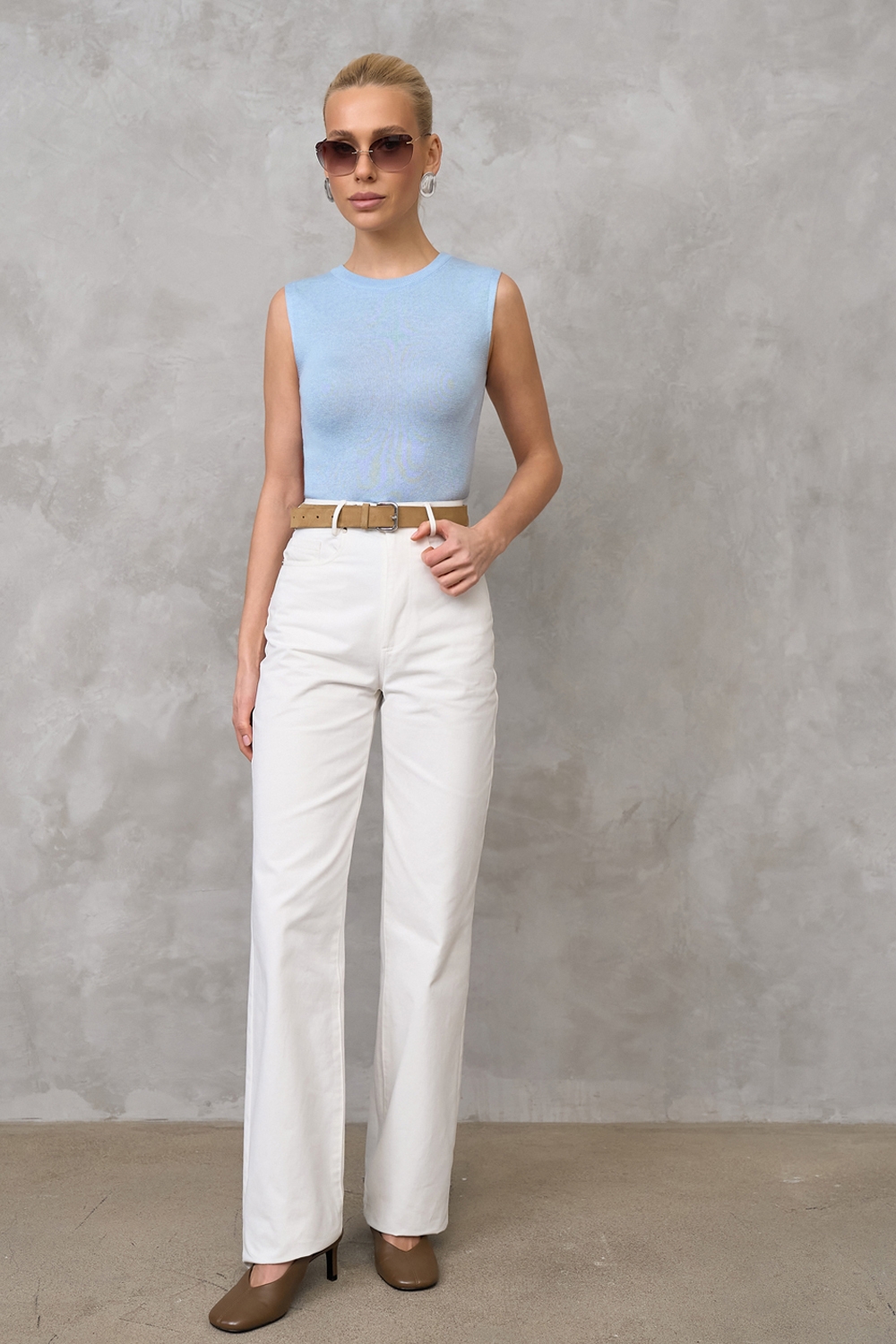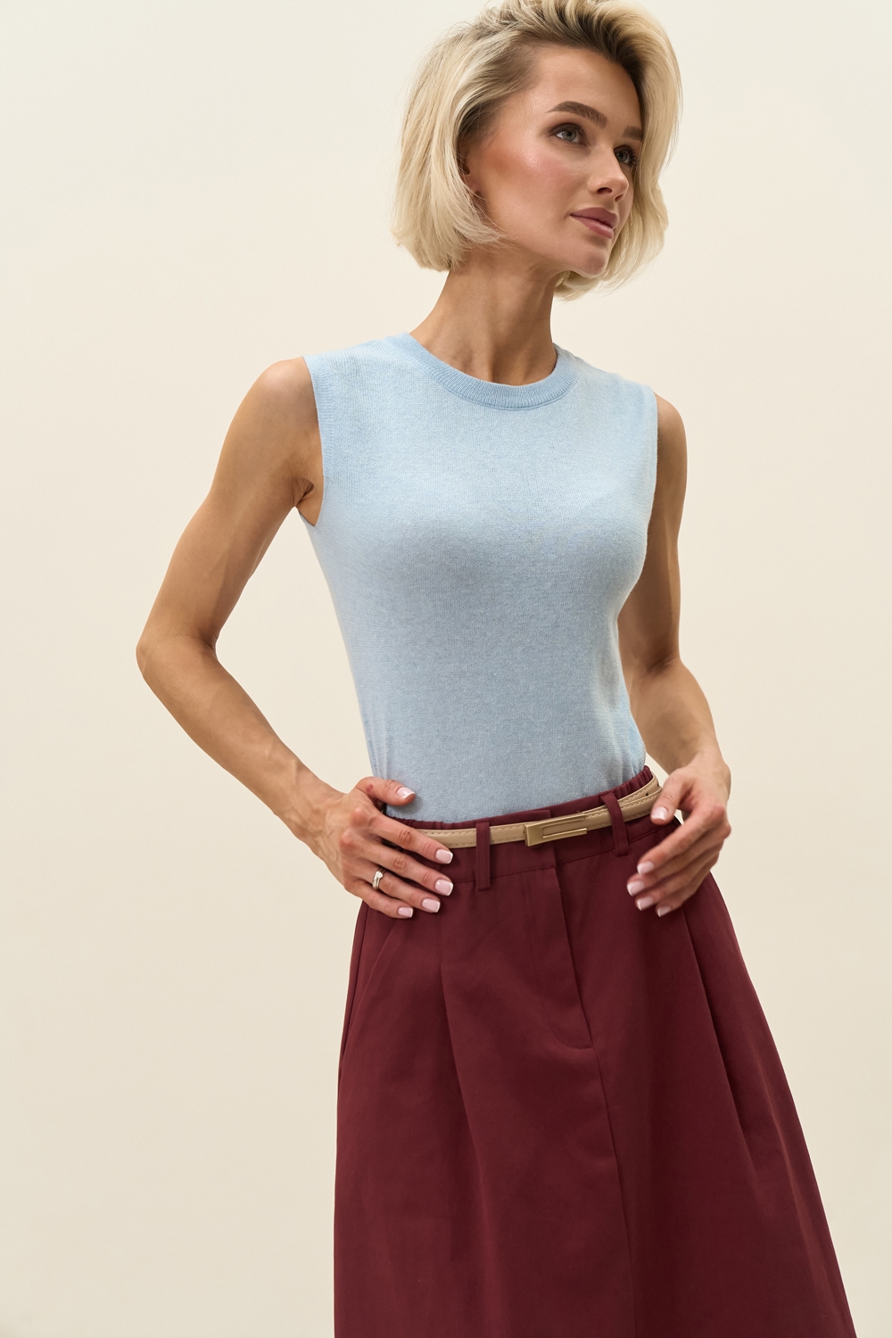 Базовий топ з супертонкої бавовняної пряжі люксової якості. Напівпрозорий, прямого силуету в гладкому переплетенні. Елегантна модель для створення жіночних та класичних образів.