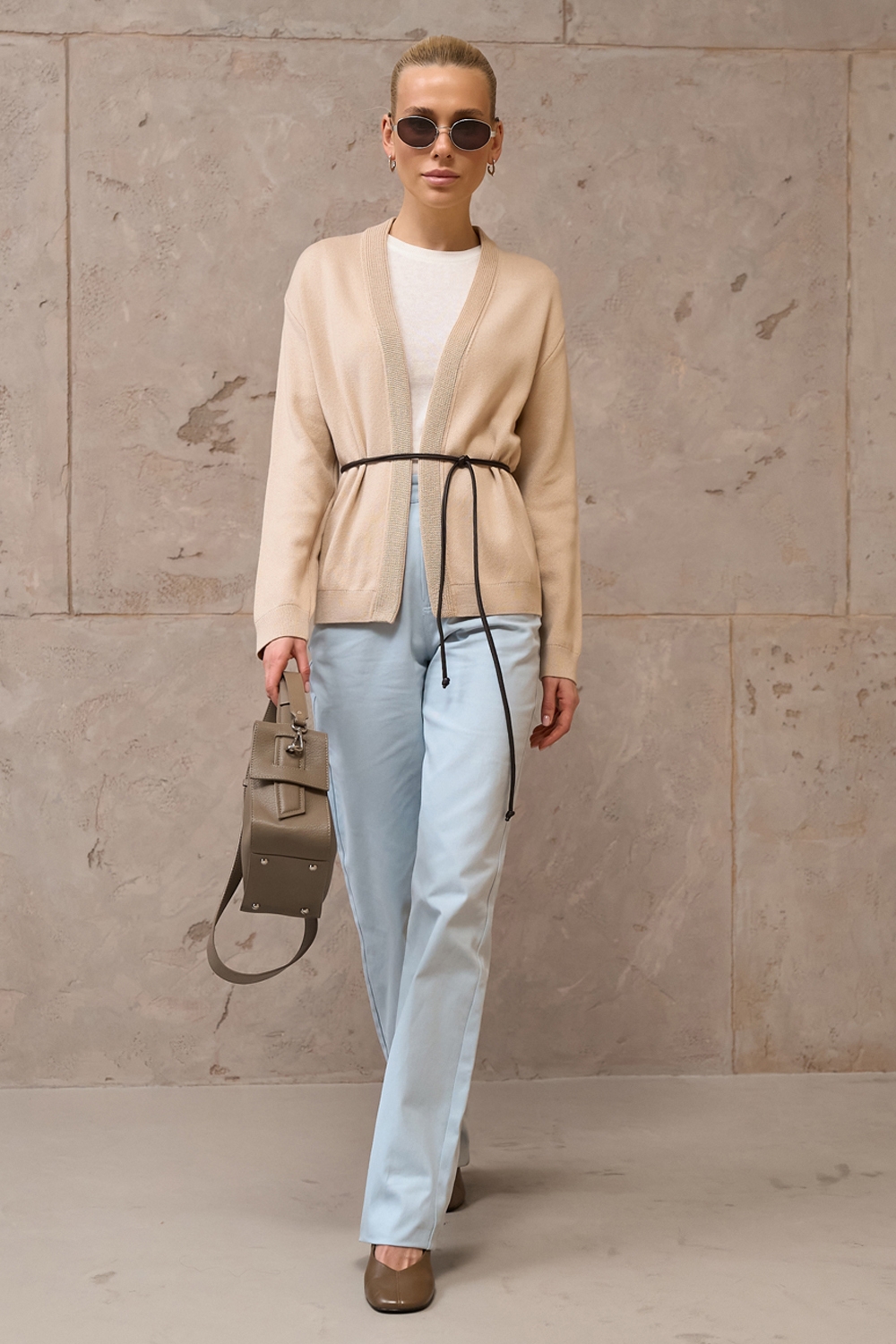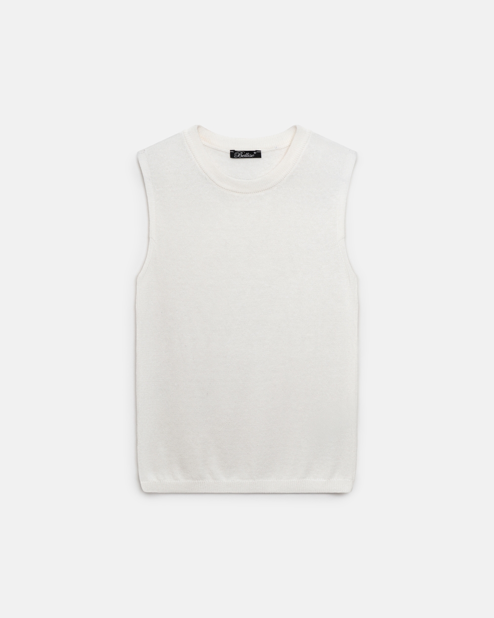 Базовий топ з супертонкої бавовняної пряжі люксової якості. Напівпрозорий, прямого силуету в гладкому переплетенні. Елегантна модель для створення жіночних та класичних образів.