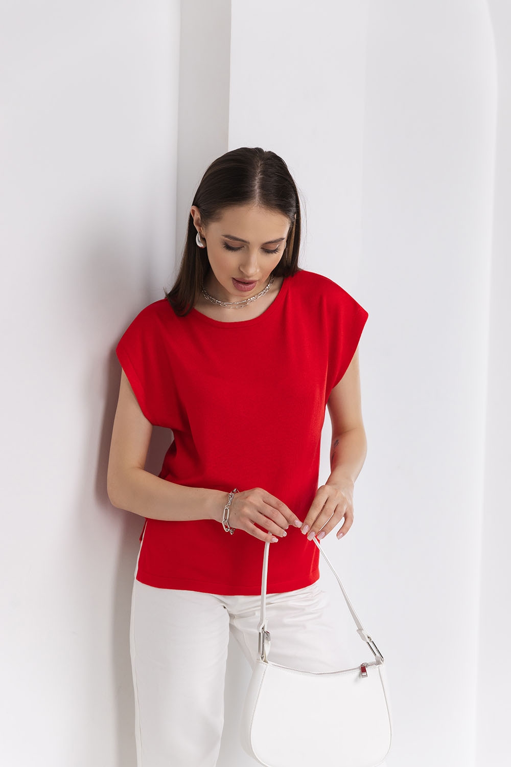 Базовий топ вільного силуету з ніжної та шовковистої пряжі з включенням бавовни та віскози. Горловина оброблена охайною еластичною планкою. Легко поєднується як із трендовими широкими низами, так і з вузькою класикою.