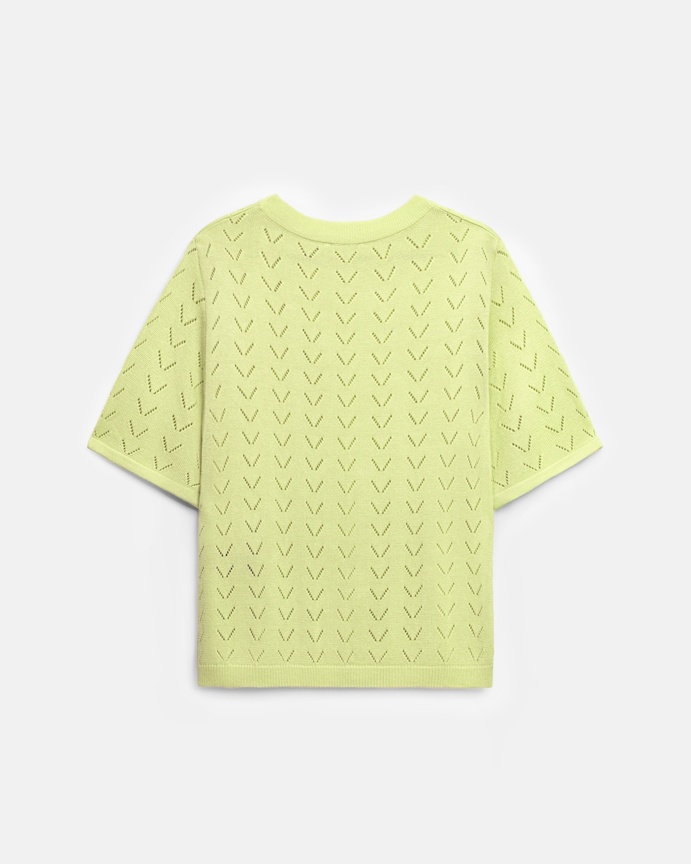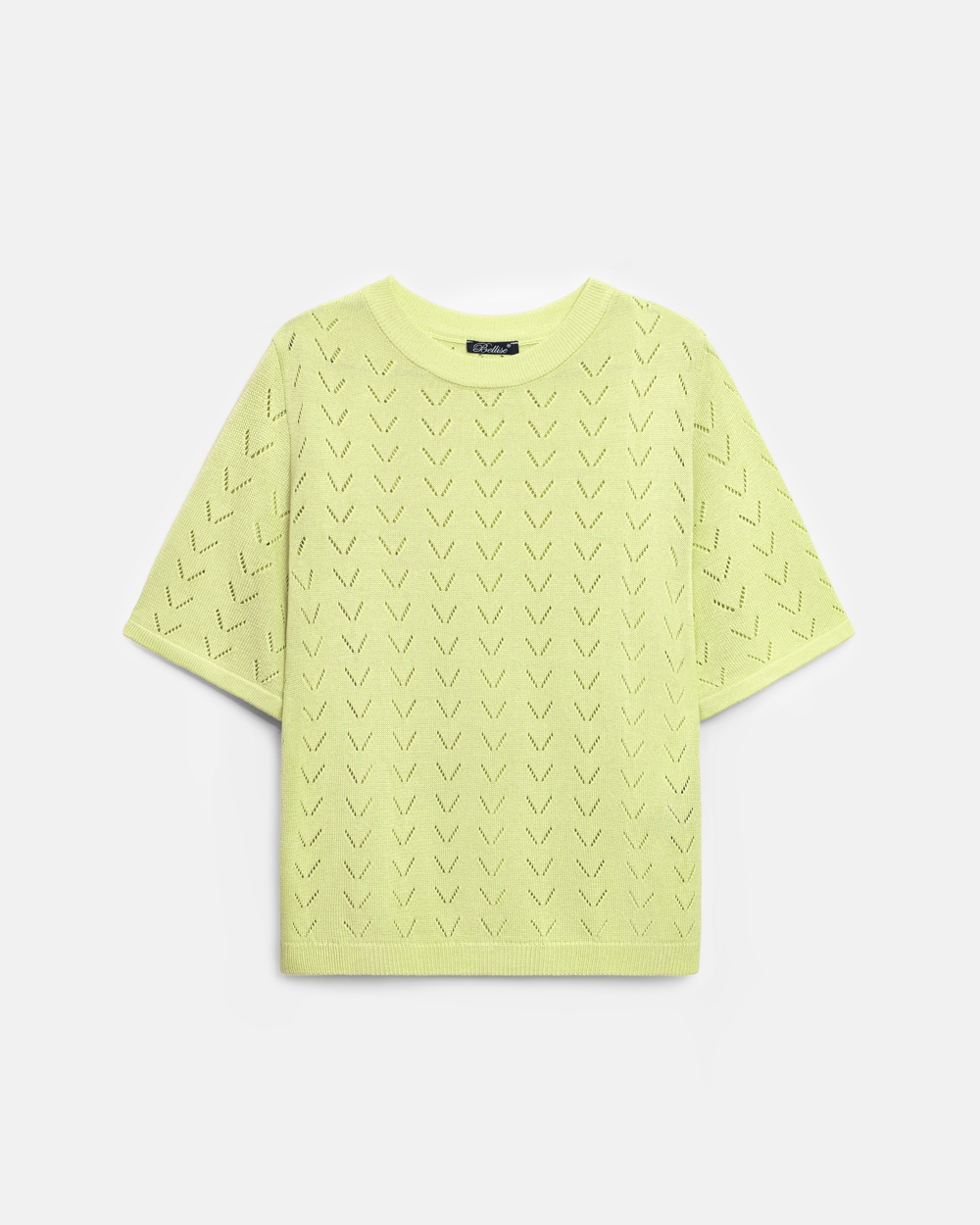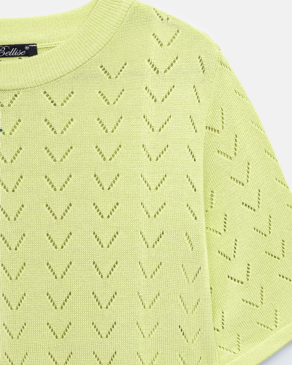 Ніжний топ виготовлений із м'якої, шовковистої віскозної пряжі. Ажурний орнамент по усьому виробу додає витонченості.