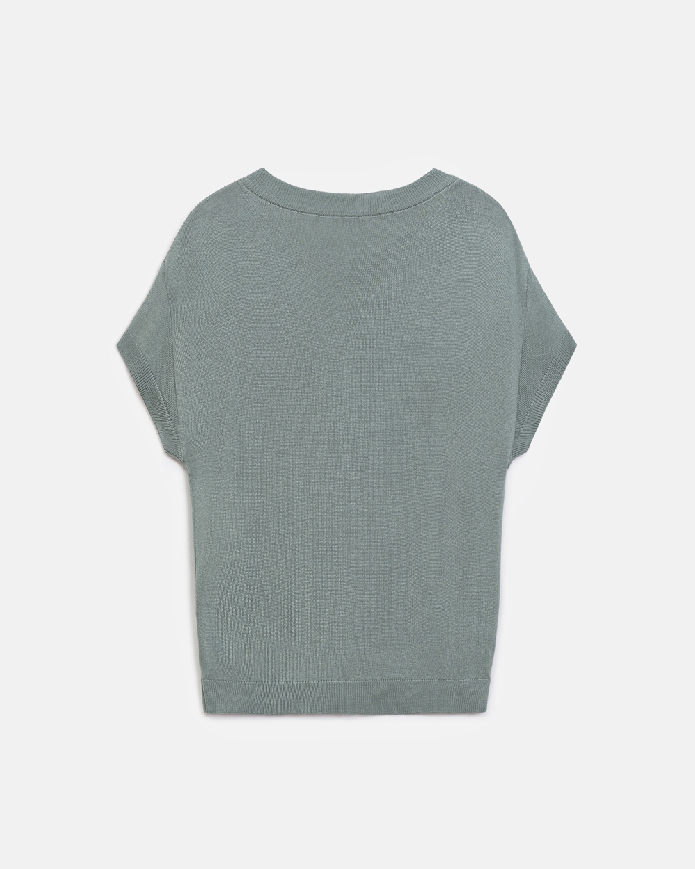 Легкий напівпрозорий топ з віскозної нитки. М’яка, шовковиста, струмуюча. Вільний крій зі спущеною лінією плеча додає розслабленості та комфорту.