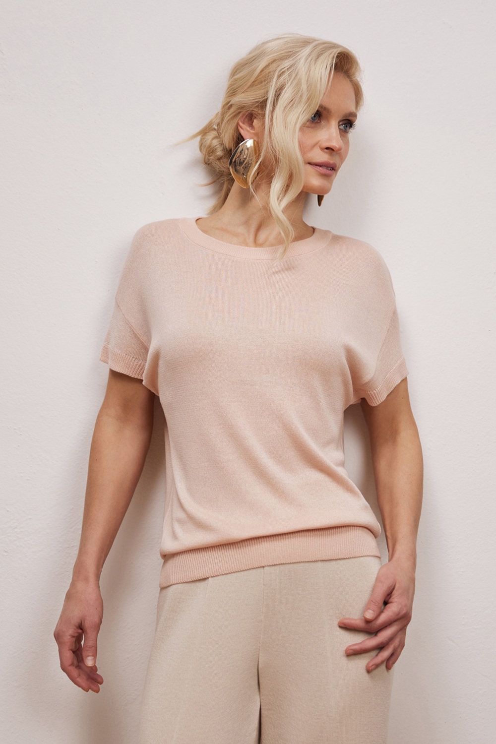 Легкий напівпрозорий топ з віскозної нитки. М’яка, шовковиста, струмуюча. Вільний крій зі спущеною лінією плеча додає розслабленості та комфорту.