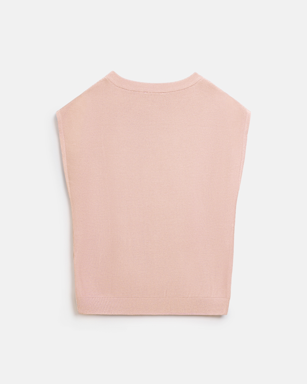Універсальний топ вільного фасону з коротким рукавом. Модель виготовлена з еластичної віскозної пряжі з додаванням бавовни.