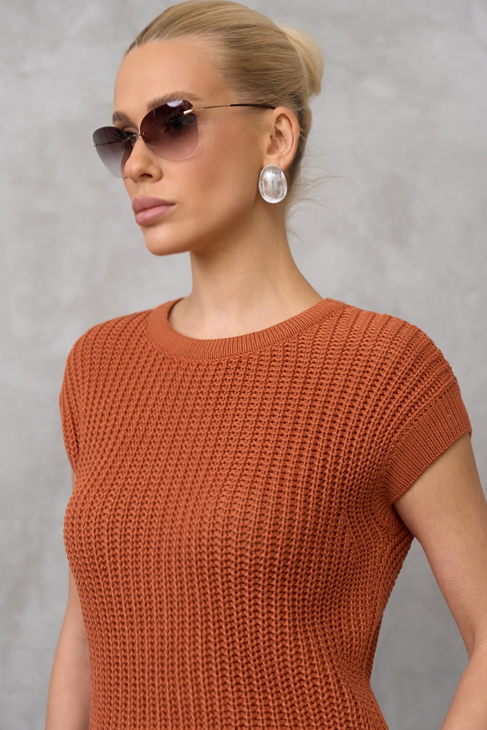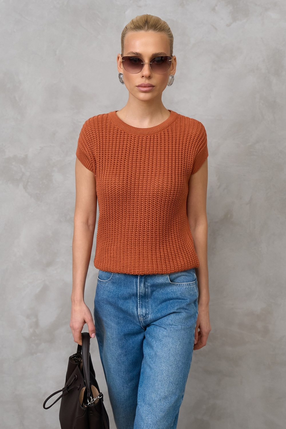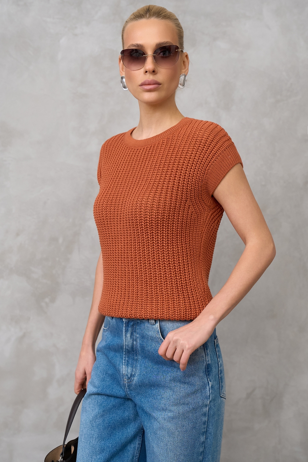 Бавовняний топ з додаванням віскози виконаний фактурною напівпрозорою в'язкою. М'який, еластичний, приємний до тіла. По низу виробу фіксуючий манжет.