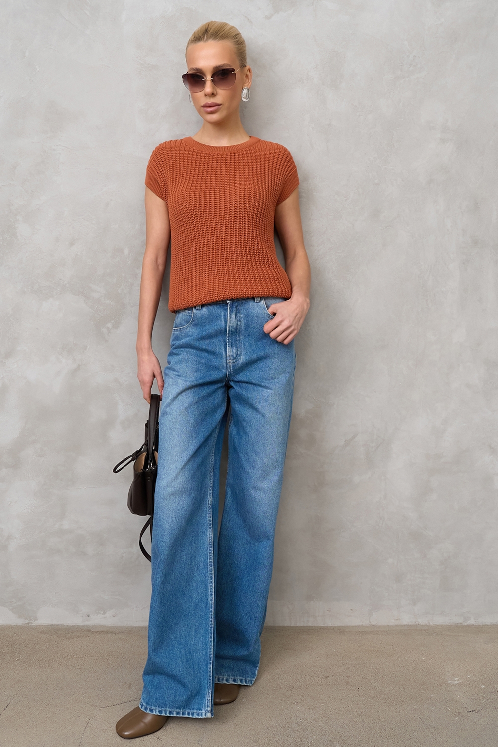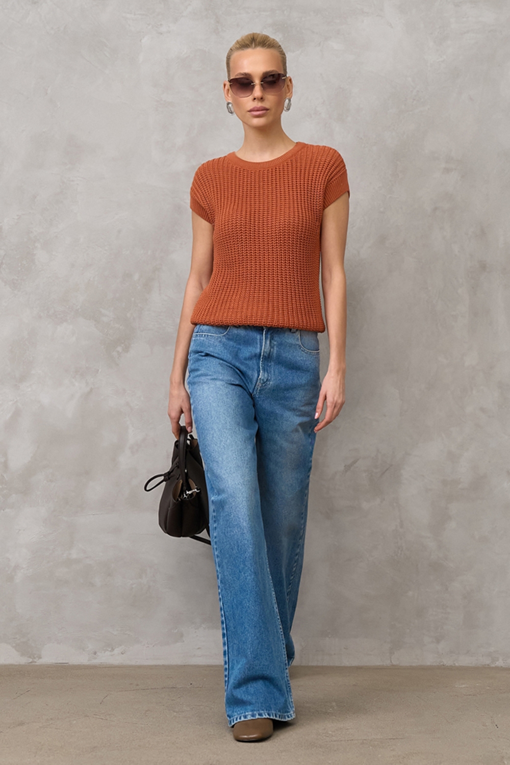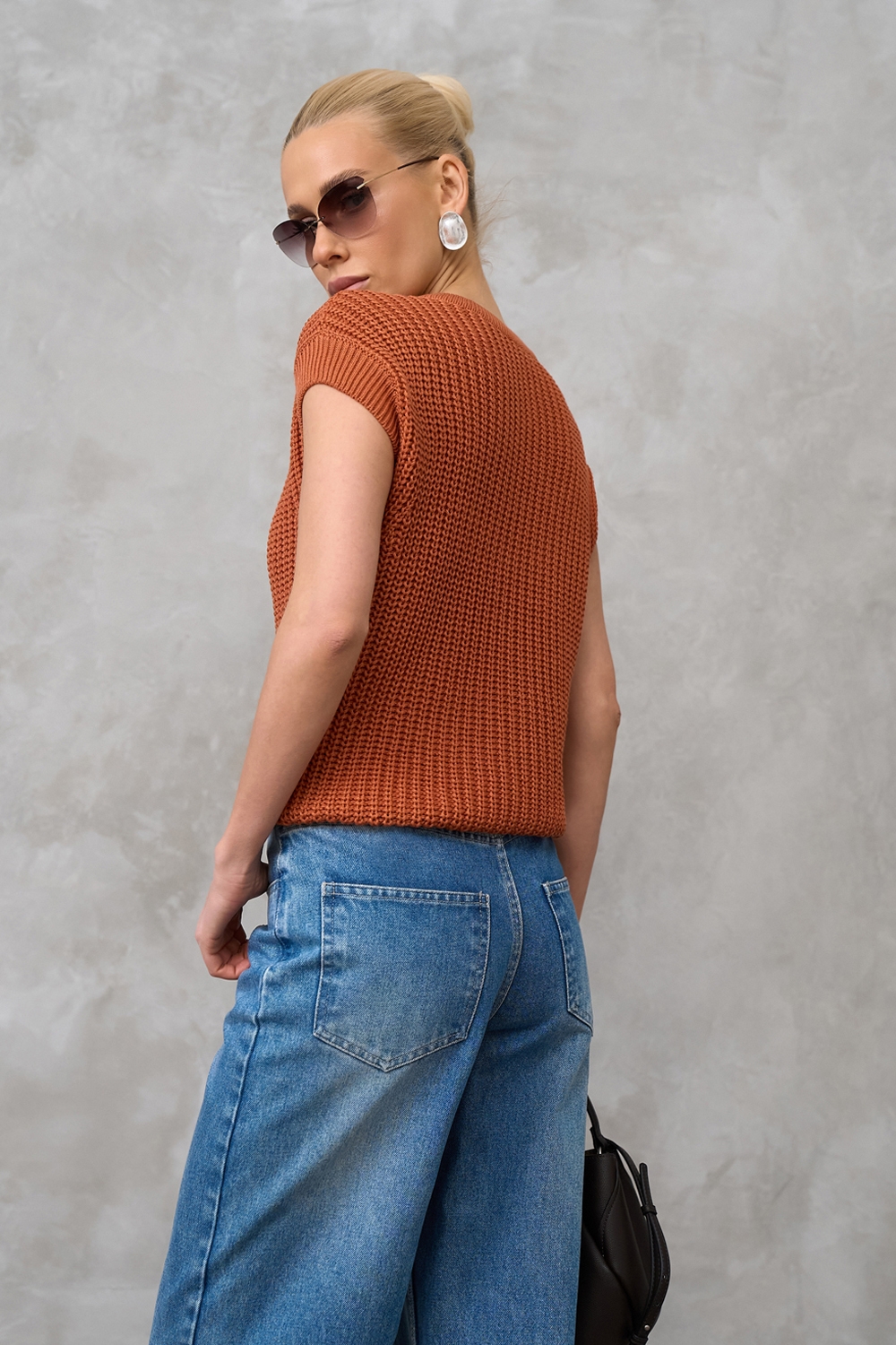 Бавовняний топ з додаванням віскози виконаний фактурною напівпрозорою в'язкою. М'який, еластичний, приємний до тіла. По низу виробу фіксуючий манжет.