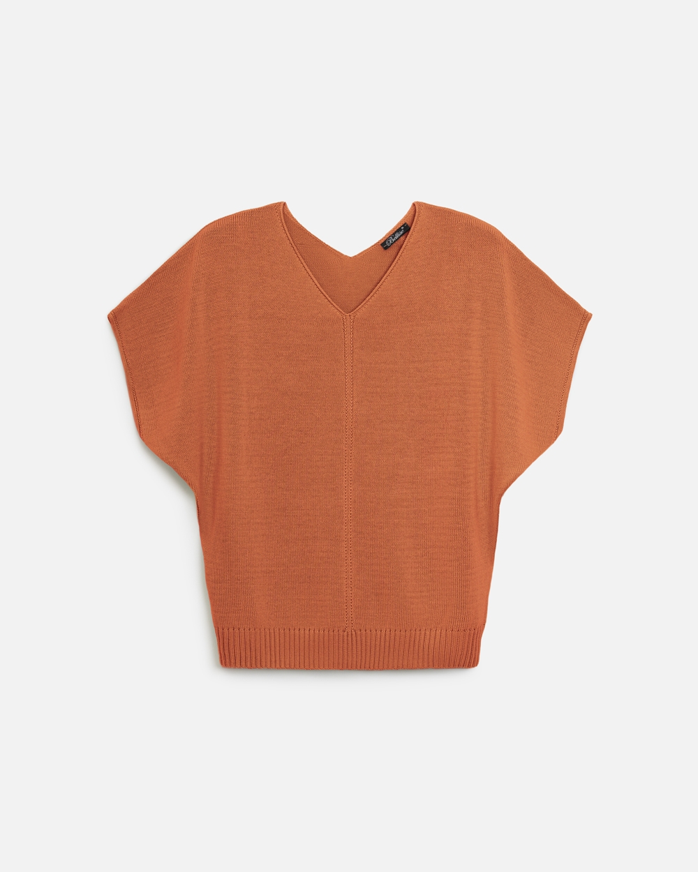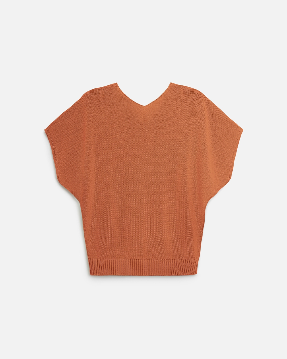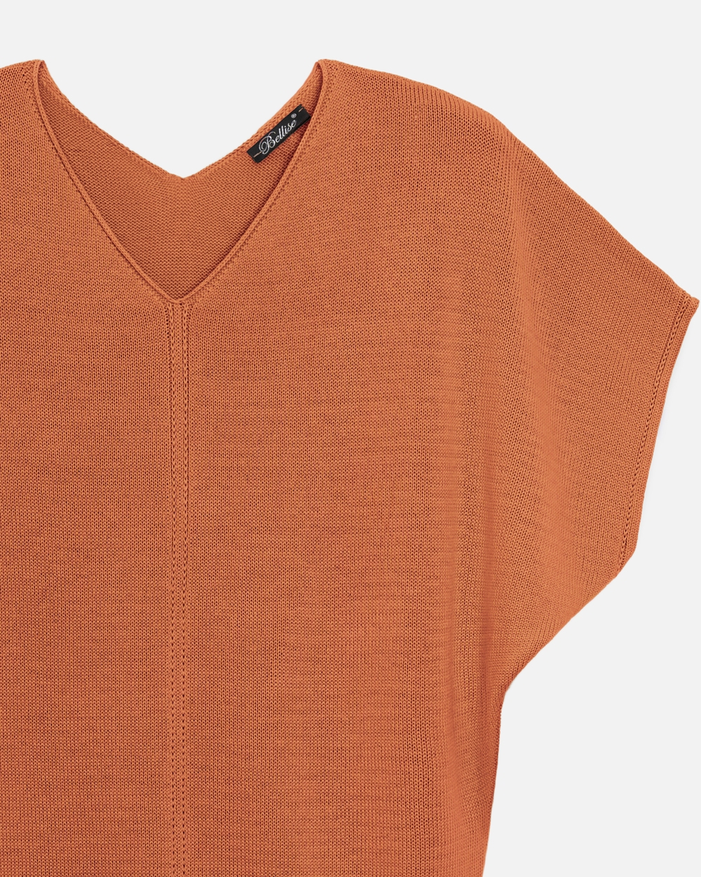 Бавовняний топ зі спущеною лінією плеча. Лаконічний дизайн доповнений вертикальним візерунком по центру. По низу виробу фіксуючий манжет-резинка.