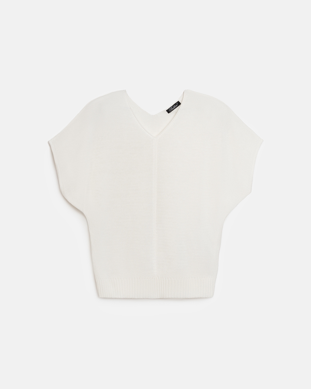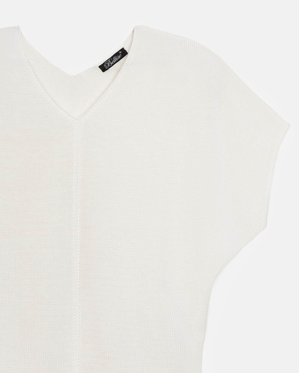 Бавовняний топ зі спущеною лінією плеча. Лаконічний дизайн доповнений вертикальним візерунком по центру. По низу виробу фіксуючий манжет-резинка.