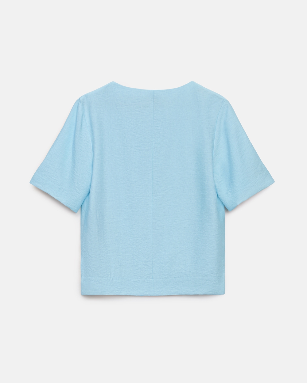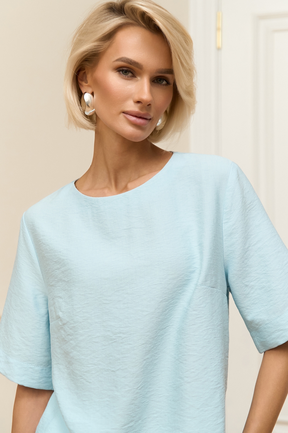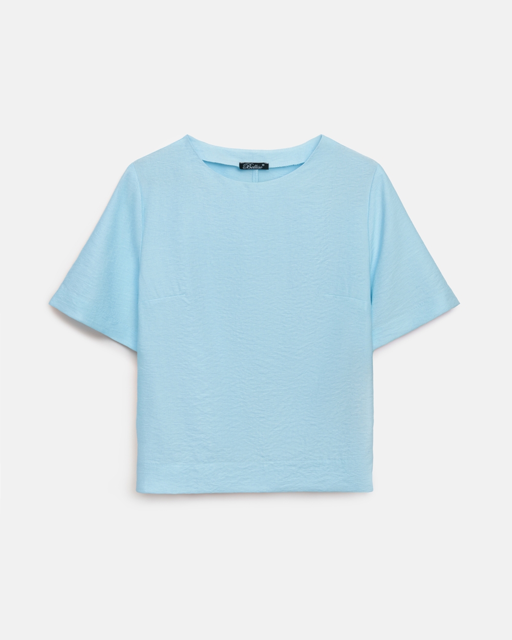 Лаконічний топ вільного силуету виготовлений із лляної тканини з додаванням віскози. Модель має зручні рукави довжиною до ліктя та невеликі розрізи в бокових швах.