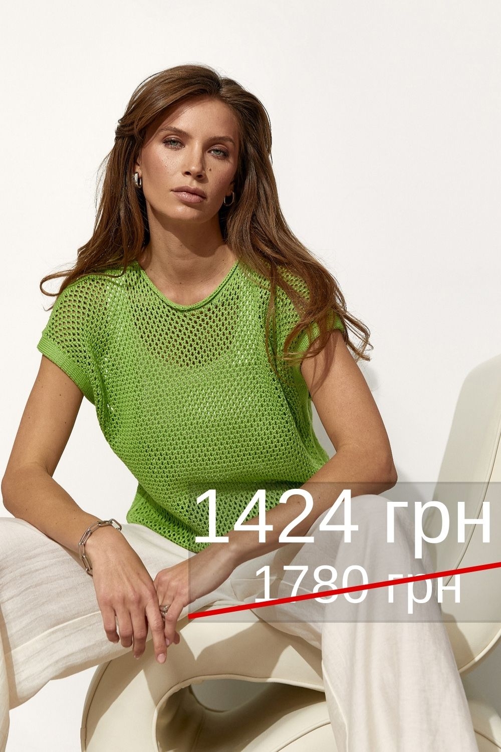Ажурний топ-сітка з натуральної бавовняної пряжі з додаванням віскози підкреслить вашу індивідуальність.