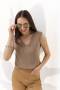 Топ з відкритими плечима з приємної до тіла м'якої натуральної пряжі з еластаном. Широкий елегантний манжет на лінії грудей драпірується на потрібну довжину. Гарно тягнеться, переплетіння забезпечує комфортне прилягання до тіла.