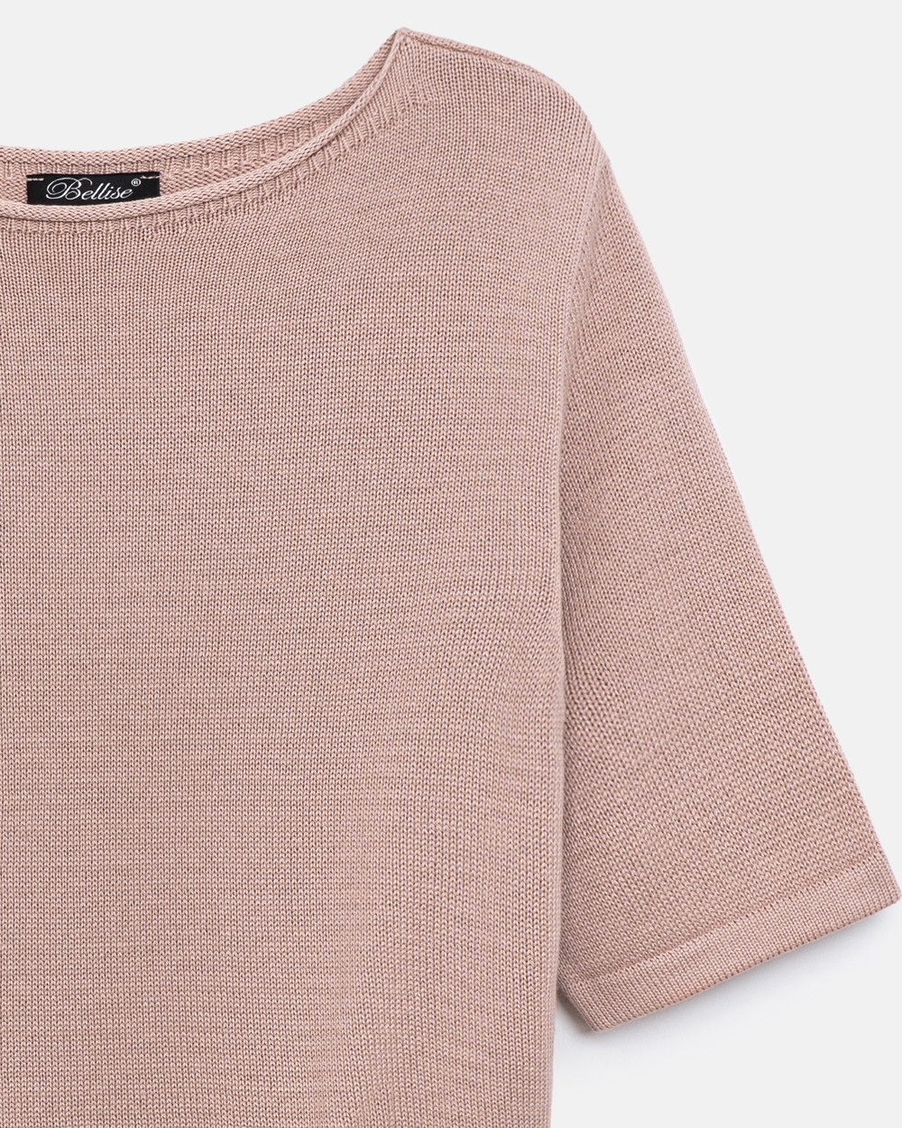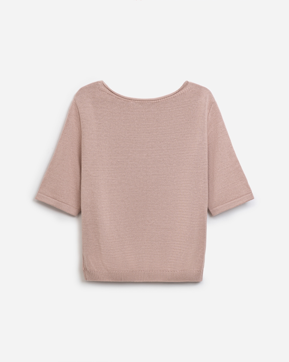 Бавовняний топ вільного силуету, виконаний гладкою в’язкою середньої щільності. Модель з елегантною горловиною-човником та коротким рукавом.