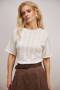 Бавовняний топ вільного силуету, виконаний гладкою в’язкою середньої щільності. Модель з елегантною горловиною-човником та коротким рукавом.