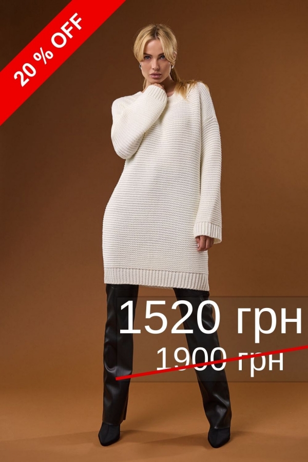 Стильна та практична туніка комфортного об'єму з приємної м'якої напіввовняної пряжі. Розслаблена резинка манжетів та по низу виробу.