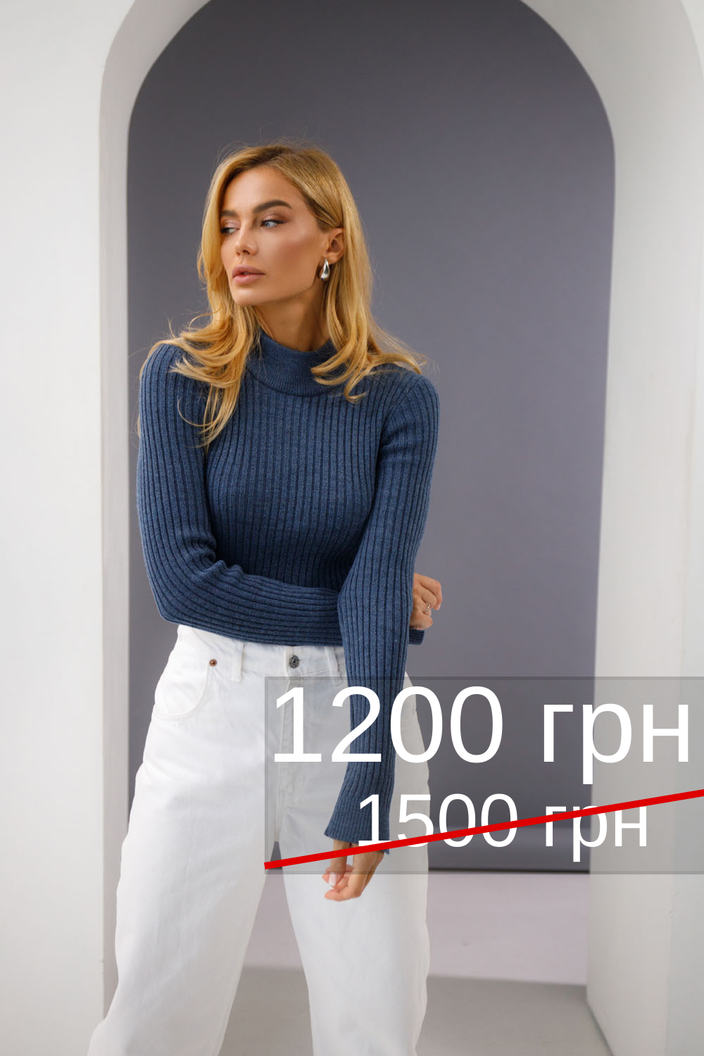 Базовий джемпер зв'язаний вертикальним малюнком, виконаний із затишної та приємної пряжі із включенням віскози. Комфортний комір-стійка, стильний манжет з розрізом.