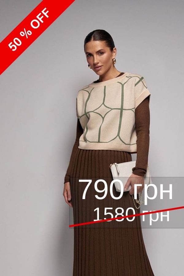 Стильний, елегантний жилет із змішаної пряжі на основі бавовни та віскози. Поєднання класики з трендовими фасонами.