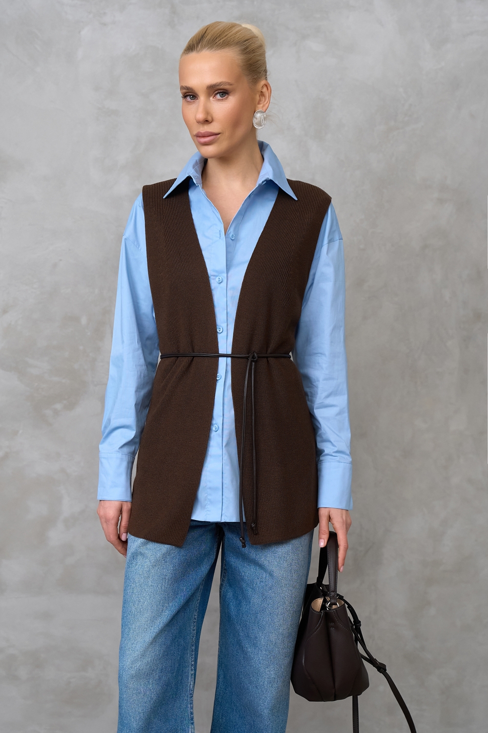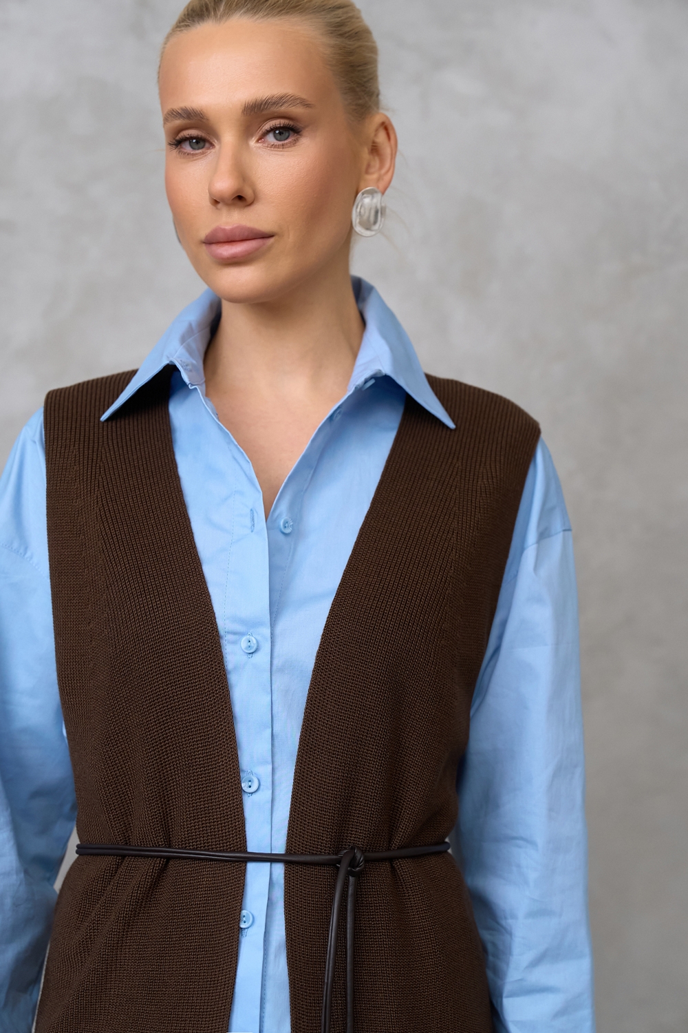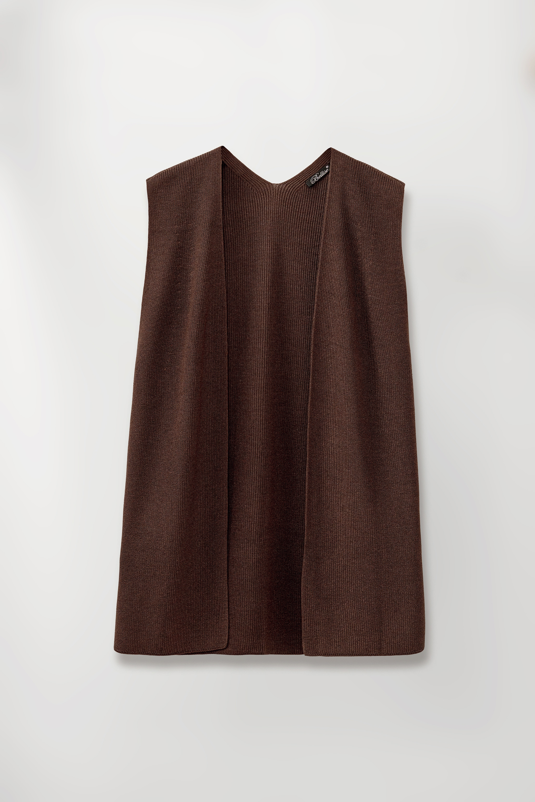 Елегантний розпашний жилет з шовковистої пряжі з включенням віскози та бавовни. Гладке стабільне переплетіння, гарно тримає форму.